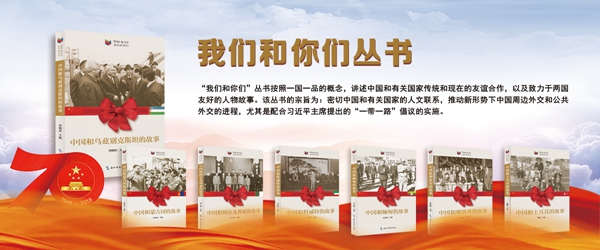 2014年启动的“我们和你们”丛书,由中国国务院新闻办公室策划,五洲传播出版社和外交笔会联合编辑出版,讲述中国和相关国家的友谊与合作,以及致力于两国友好的人物故事。该丛书旨在密切中国和有关国家的人文联系,推动新形势下中国周边外交和公共外交的进程,尤其是配合习近平主席提出的“一带一路”倡议的实施。截至目前,该丛书已出版27个分册。