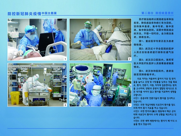 9月28日起,“防控新冠肺炎疫情——中国主题展”在首尔中国文化中心官网进行展出。展览配以中韩两国说明文字,充分呈现了在抗疫斗争中,中国与世界各国并肩作战、共克时艰的鲜明立场和有力行动。