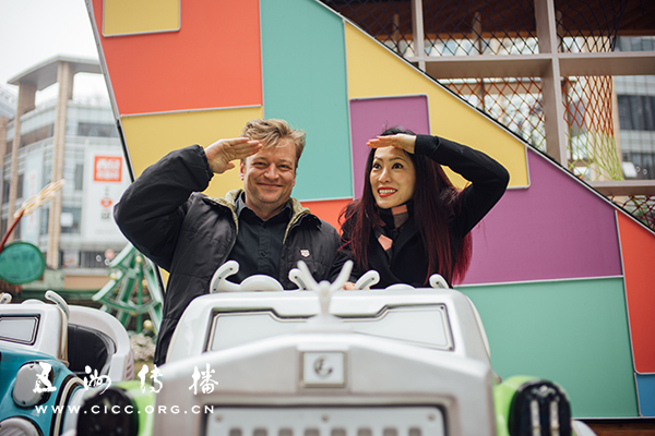 图为主持人在上海拍摄现场。