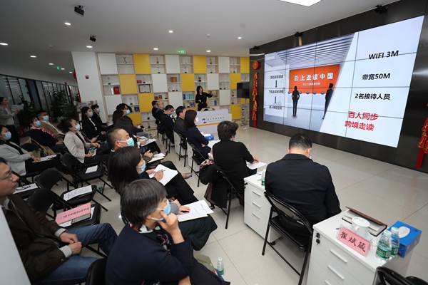 五洲社召开2021年创新项目评审会,图为员工在分会场收看直播。