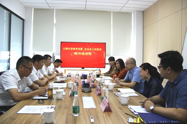 近日,安徽省定远县委常委、常务副县长王少兵,县委常委、宣传部长方浩亮,县城乡发展投资集团有限公司及县融媒体中心负责人等一行四人前来访五洲开展产业合作推进座谈会。五洲传播出版社副社长、副总编辑井水清,五洲传播有限公司总经理杨艳珺,五洲先进视界传媒有限公司董事长向忻等出席座谈会?;嵘希骄托旅教迨泳跻滴裎蠢捶⒄狗较?、深度合作及业务托管等工作进行了深入探讨,并签署了定远县新媒体视觉业务托管协议。(向忻)