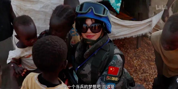 中国维和女兵则与难民儿童交起了朋友:她们用中文教难民儿童唱中国儿歌、跟他们一起做游戏、拍照、教他们练中国功夫、为他们疗伤。在跟他们交流时,中国维和女兵还把眼镜摘下来,因为可以让孩子们看清她的脸部,“当我微笑的时候,孩子们可以感受到我的善意,这样也算一种互相尊重的体现吧”??吹侥衙裼械亩缘?、子弹为玩具,中国女兵感到既震惊又难过,最后用食品、饮料等换出了这些“不和谐的玩具”。中国女兵的爱心获得了孩子们的信任,他们也越来越喜欢中国,用中文参杂着英语说:“中国 is good”。