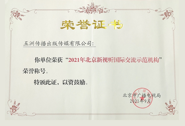 五洲荣获“2021年北京新视听国际交流示范机构”