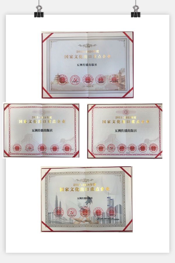五洲连续六届获评国家文化出口重点企业