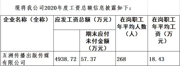 2020年五洲传播出版传媒有限公司 工资总额信息披露
