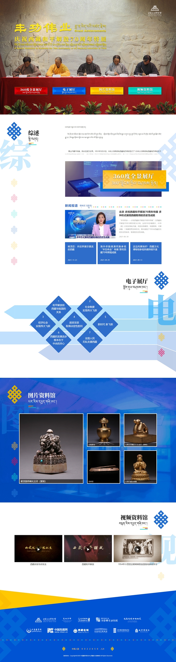 2021年是西藏和平解放70周年,是党和国家政治生活中的一件大事、喜事。五洲受中国藏学研究中心西藏文化博物馆委托,由新媒体中心组成项目团队,承建“丰功伟业——庆祝西藏和平解放70周年特展”线上数字展,共同打造线上线下相结合的互动宣传平台,全方位、数字化呈现实体展的全部内容。