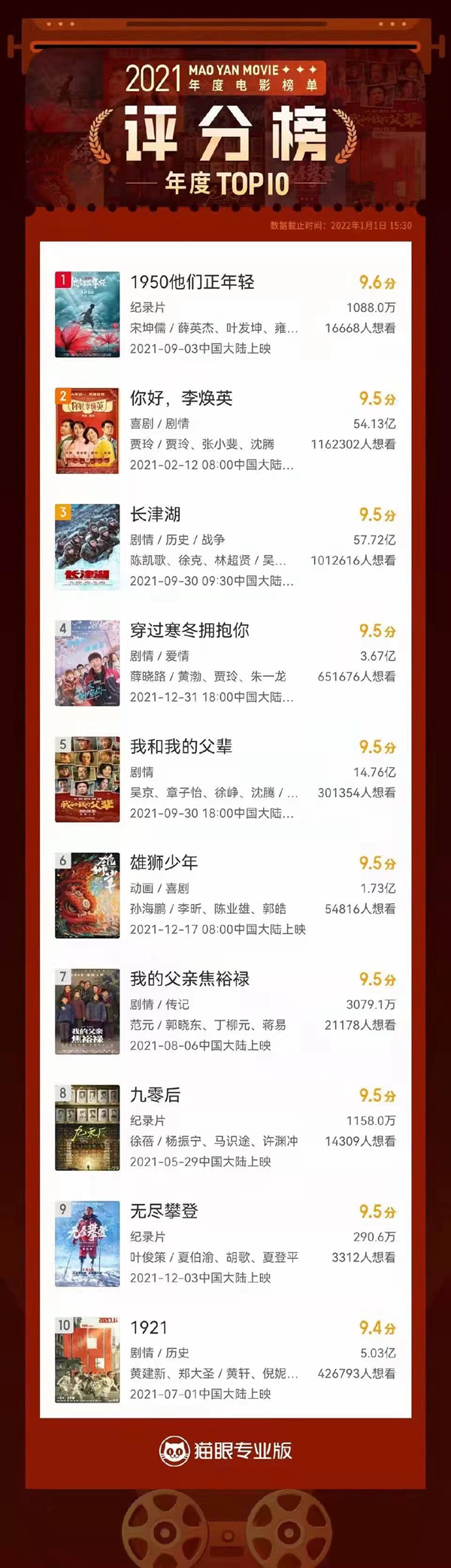 由五洲传播中心与少年派影业无锡有限公司等机构联合出品的纪录电影《1950他们正年轻》于2021年12月28日起,在爱奇艺、优酷、腾讯视频、哔哩哔哩四平台同步上线,获全网好评。