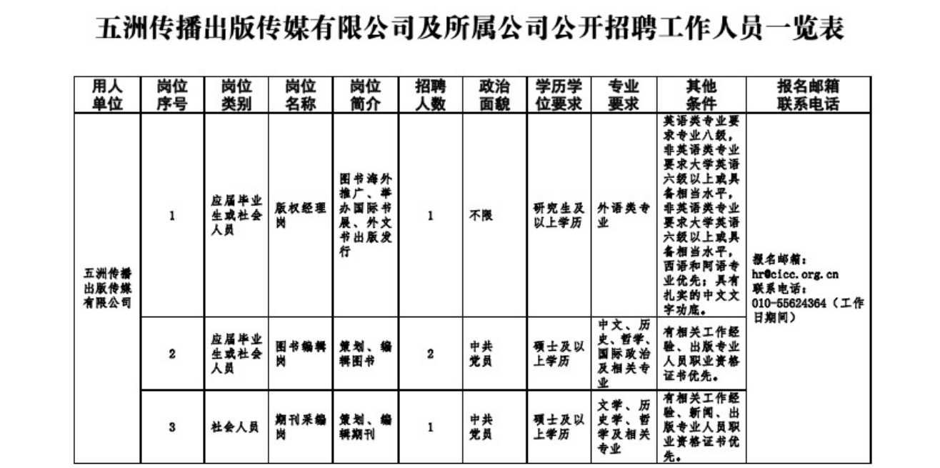 本启事由五洲传播出版传媒有限公司人力资源部负责解释。