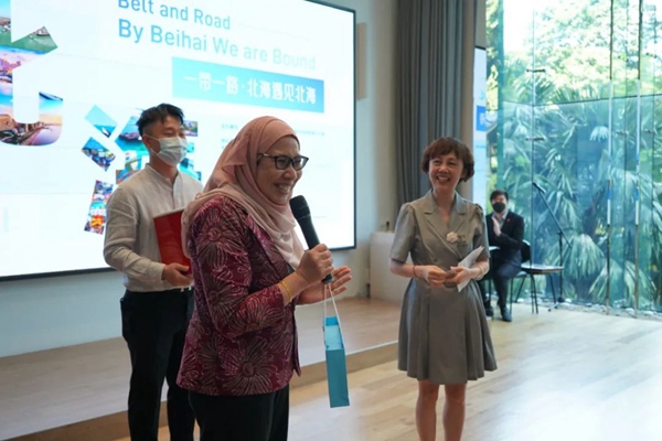 北海市委宣传部常务副部长苏远信代表北海市政府向吉隆坡中国文化中心赠送北海礼物