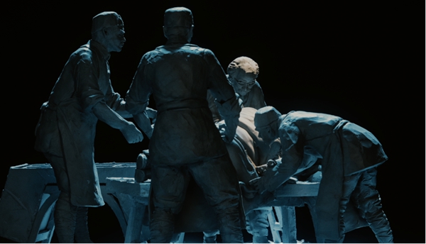 视听表达上,本片也贯彻真实原则。基于扎实的调研和采访,收集了大量的宝贵历史资料,无数老照片、旧影像连缀,既有白求恩年轻时的意气风发,也有他佝偻着背做手术的身影。对于一些至关重要又难以表现的历史情境,本片独具创意,采用泥塑定格动画来表现,由专业美术团队纯手工捏制,再通过精心的调度、流畅的运镜,将静态场景转变为动态视频,兼具历史感和艺术感,为黑白影像风格增添色彩。