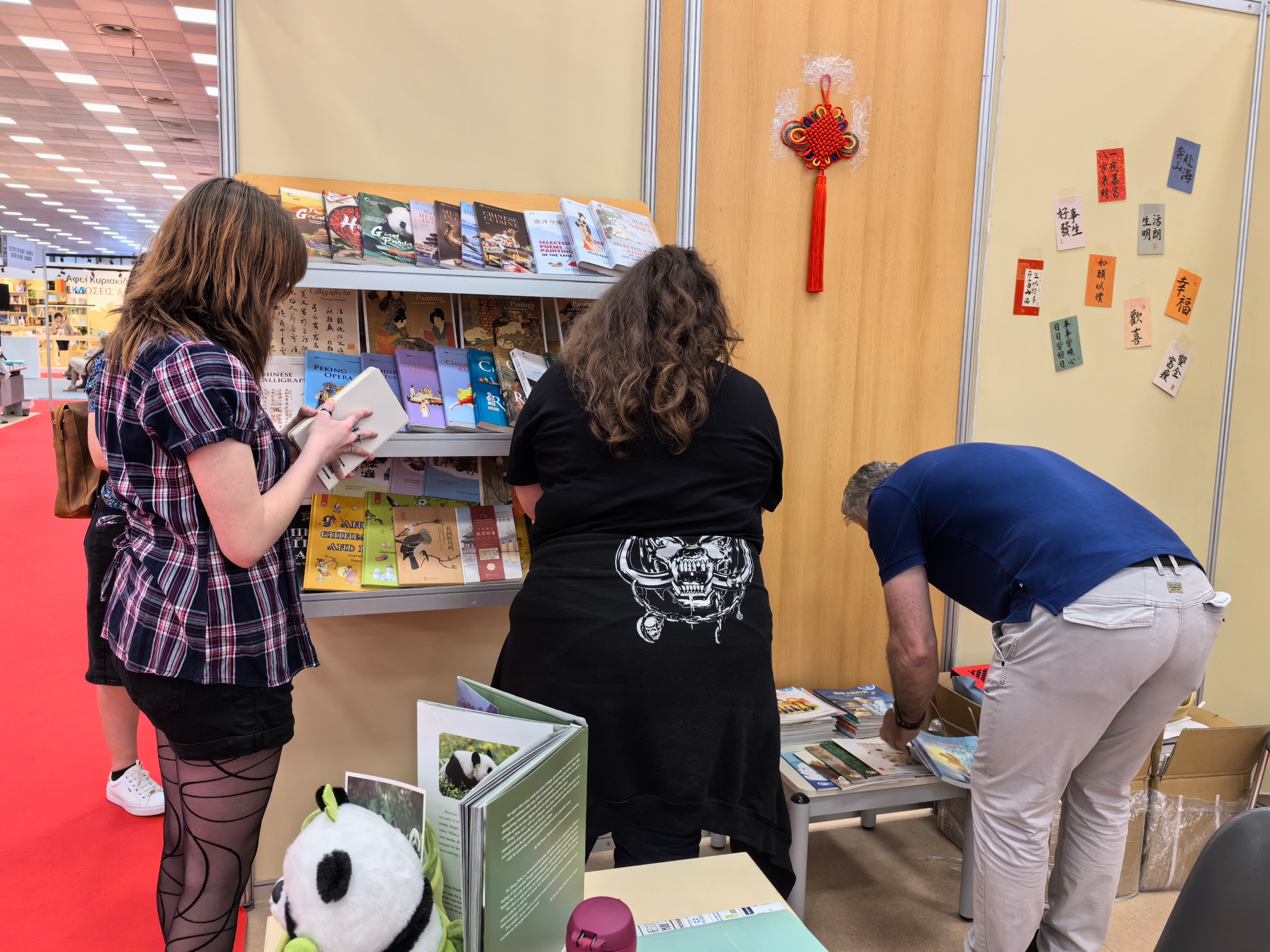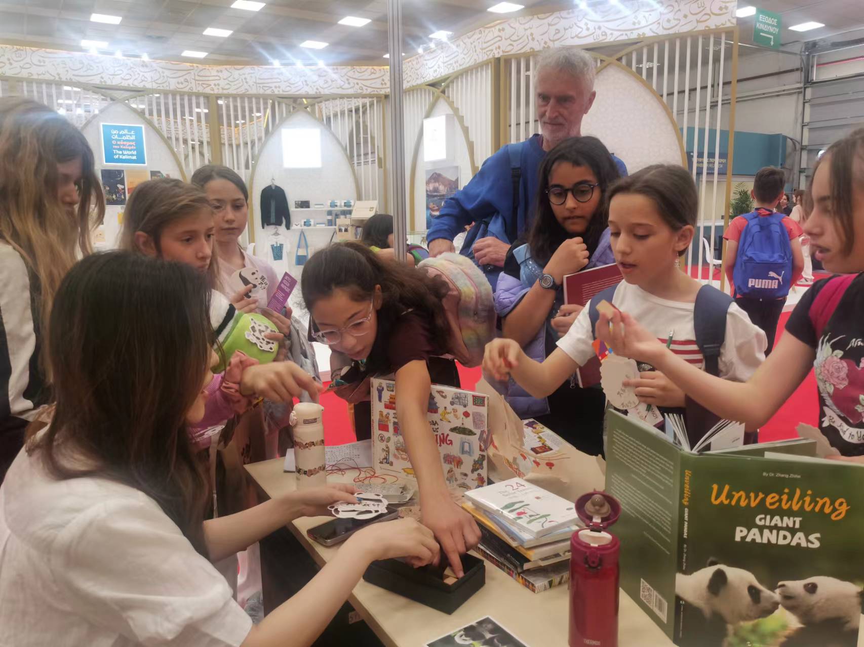 书展期间,通过《欢乐中国年》立体翻翻书、《中国二十四节气》(汉英涂色明信片)、《趣涂中国十二生肖》(汉英涂色明信片)等极具互动性的图书及文创产品,吸引众多当地读者驻足展位,感受春节、年画、十二生肖、二十四节气等中国元素。展位现场还精心组织了中国文化知识小问答,赢取中国风明信片、书签和集章打卡活动,当地读者踊跃参与,在轻松趣味的互动中深入了解中国文化。“我爱熊猫!我爱中国!我想学中文!”参与活动的小朋友们充满热情地说道。