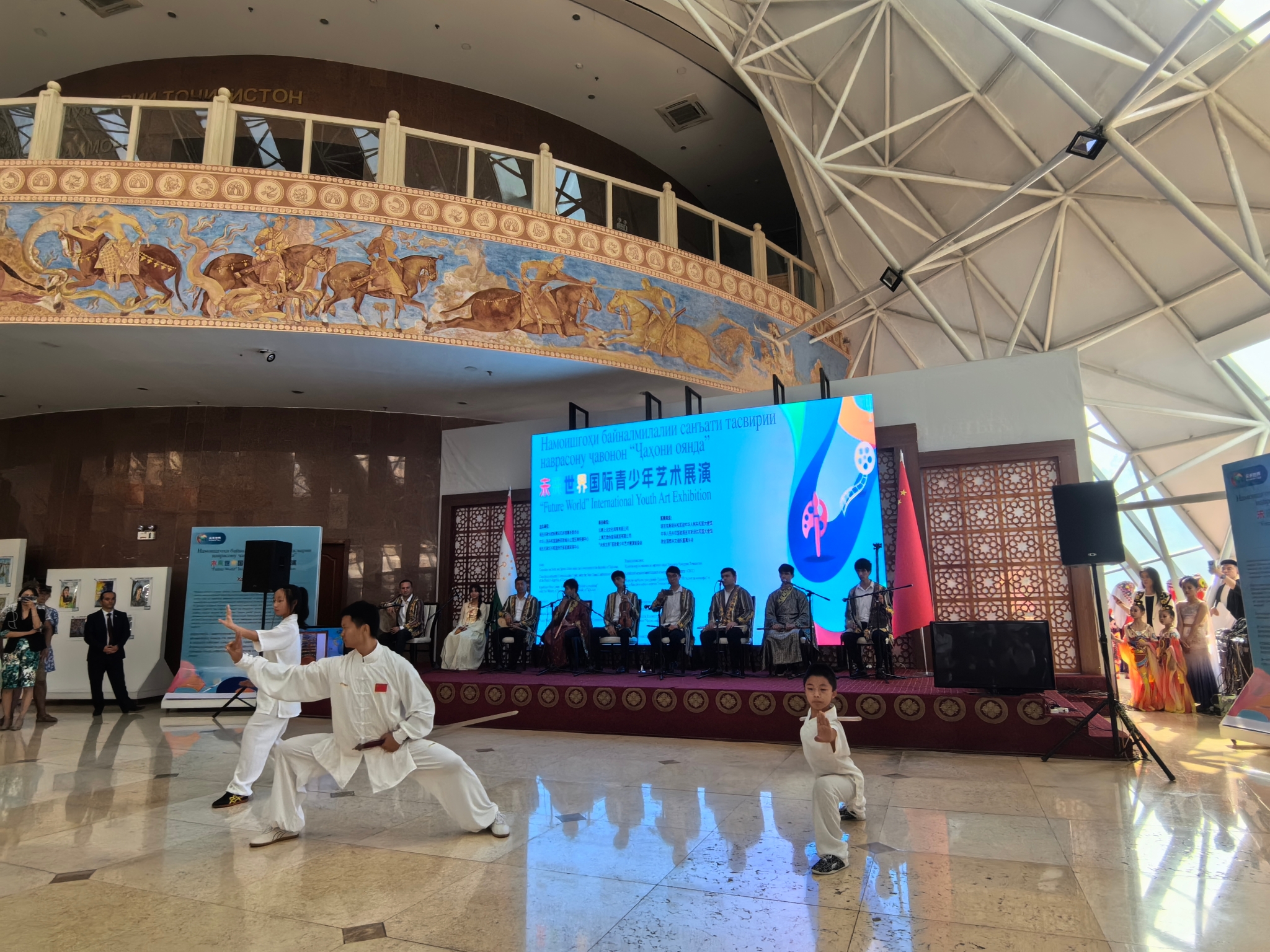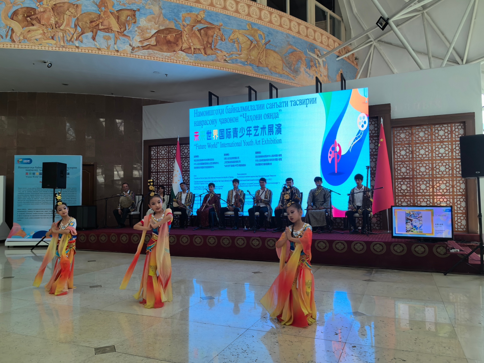 当地时间6月27日下午,2024“未来世界”国际青少年艺术展演在塔吉克斯坦杜尚别塔吉克斯坦国家博物馆盛大开幕。本次展演由塔吉克斯坦共和国政府青年和体育事务委员会、中华人民共和国国务院新闻办公室五洲传播中心、塔吉克斯坦共和国外交部直属媒体中心共同主办,云南上合文化体育有限公司、上海艺博会国际展览有限公司、“未来世界”国际青少年艺术展演组委会承办,塔吉克斯坦共和国驻华大使馆、中华人民共和国驻塔吉克斯坦共和国大使馆、联合国教科文组织直属协会支持,旨在搭建上海合作组织各成员国青少年交流交往、相知相亲的桥梁,鼓励各国青少年在了解文化多样性的同时更多了解中国,助力全球青少年通过艺术创作增进对话、加深理解。