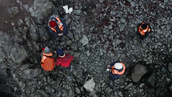 第三集中,另一队中国科研人员抵达南极进行实地科考,这片少有人类活动的大陆保留了地球的活动印记??蒲腥嗽奔锹计蠖熘秩旱谋浠?、采集丰富的地质证据,勇敢地面对极端天气和孤立无援的情况,研究地球生命从史前时代到现在的巨大变化。