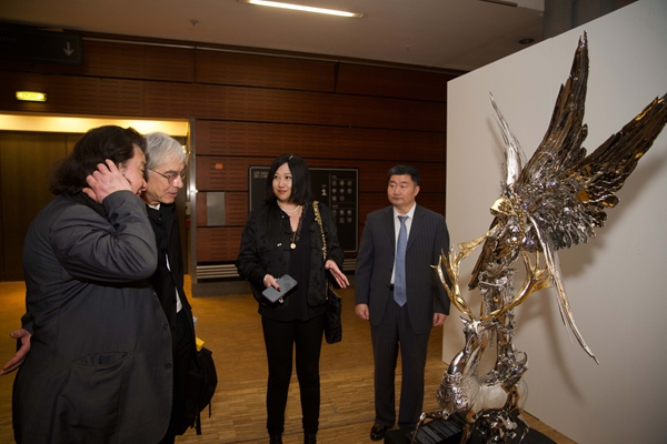 现场,来自中法有关部门、法国造型艺术家协会、法兰西美术院、法国泰勒基金会、巴黎高等服装设计学院、巴黎秋季艺术沙龙组委会等机构,以及法国TV5频道、央视网等中法艺术家、媒体记者等各界人士150余人出席了活动。