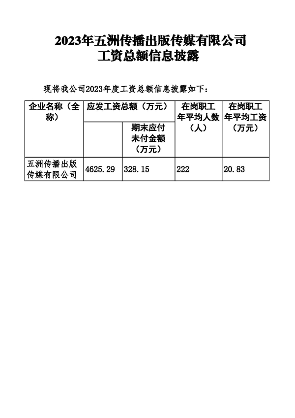 2023年五洲传播出版传媒有限公司工资总额信息披露