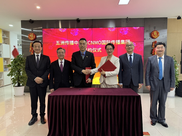 在双方领导见证下,五洲传播中心与澳门 CNMO国际传播集团签署了战略合作协议,双方将在内容制作、平台搭建、文化交流等方面开展合作,共同主办 “一带一路”媒体传播联盟年会、打造“丝路卫视”等具有国际影响力的媒体传播平台,澳门充分发挥作为中国与葡语国家商贸服务平台的优势,全方位互利合作助力深度融入高质量共建“一带一路”。
