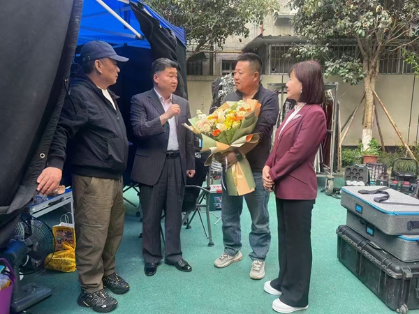 3月27日下午,中宣部机关工会副主席、五洲传播中心工会主席崔斌箴、五洲传播有限公司总经理杨艳珺等一行,前往首部聚焦新时代基层工会干部题材的电视剧《厂里厂外》拍摄现场,看望慰问演职人员,与制片人、导演等深入交流,了解电视剧创作生产进展情况。该剧为庆祝中华全国总工会成立100周年献礼作品,由中华全国总工会、中国国际电视总公司、五洲传播有限公司、五洲视点文化传播有限公司等联合出品。