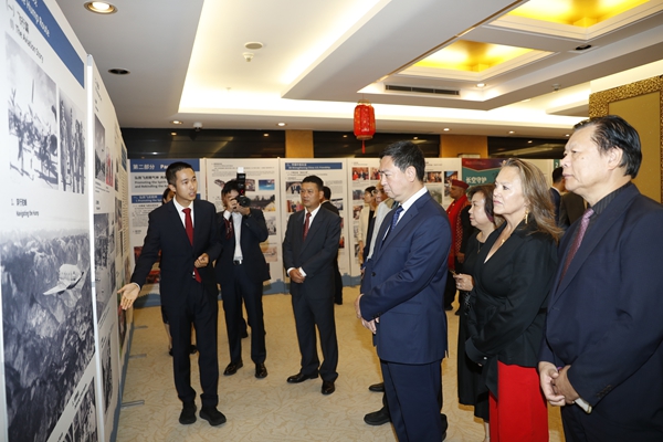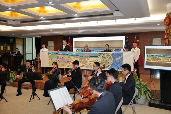 嘉宾现场展示长卷《共话友谊 岁月回响》