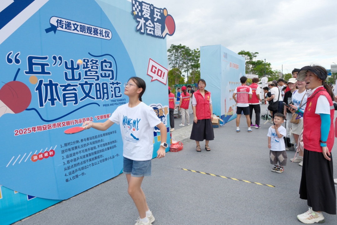 借助中国乒乓球俱乐部超级联赛契机,文明观赛专项行动在厦门奥体中心开展。活动将《厦门市文明观赛公约》转化为沉浸式体验项目,印有公约的拍照框成热门打卡点,啦啦操表演传递“文明观赛”理念,“弹入文明观赛杯”“为热爱一起乒”等互动游戏,融入“垃圾随手清理”“适时喝彩”等礼仪,吸引众多市民参与,实现体育精神与文明素养同频共振。
