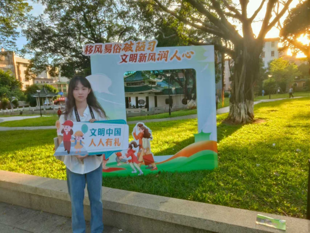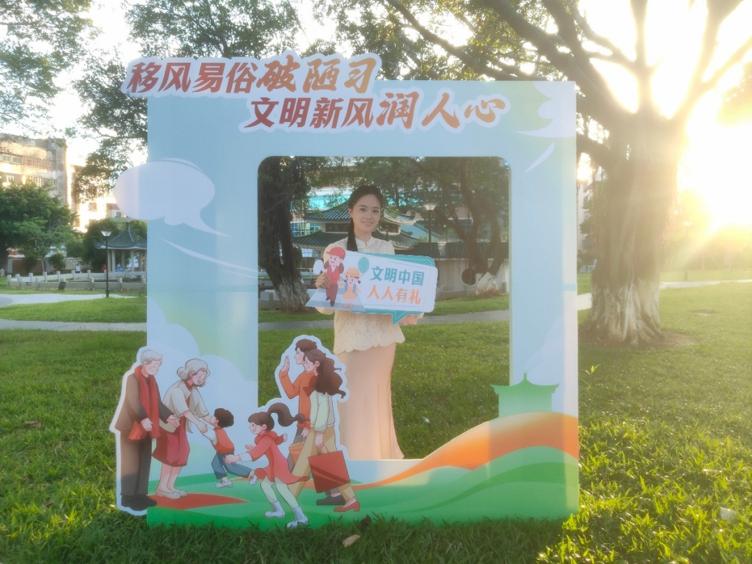 围绕“明礼福建人”公共文明素养提升行动,文明实践志愿者现场讲解日常礼仪规范,助力群众提升文明素养;