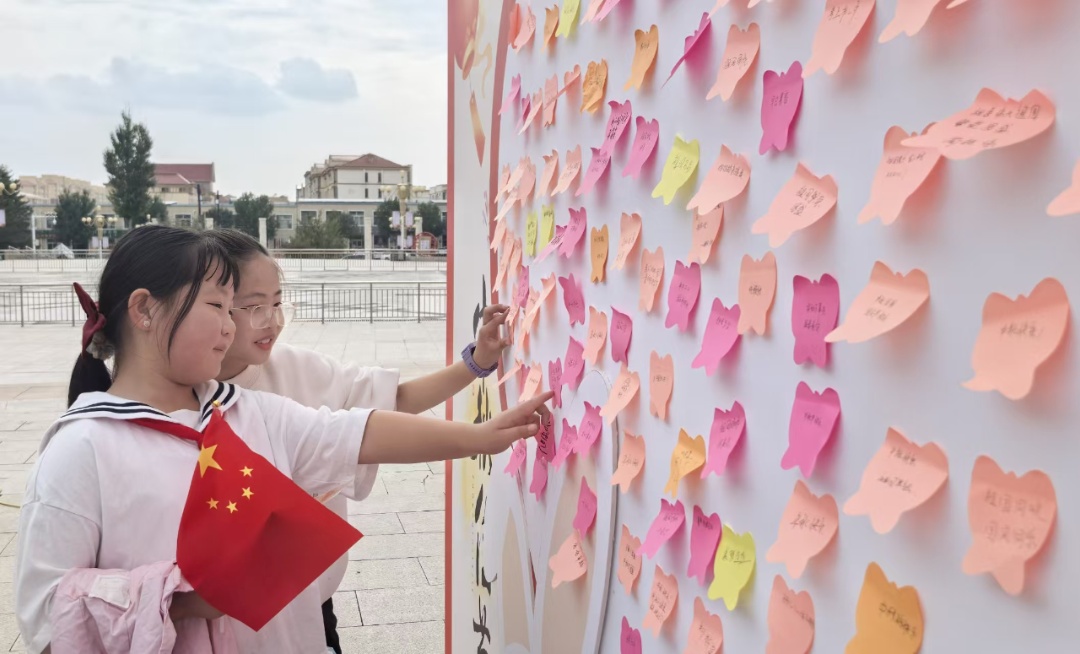 活动现场,群众填写心愿卡片贴在心愿墙。乌审旗融媒体中心供图