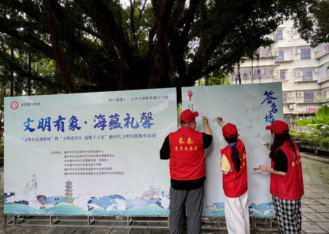 志愿者在文明承诺签名墙签名。长乐区委宣传部(文明办)供图
