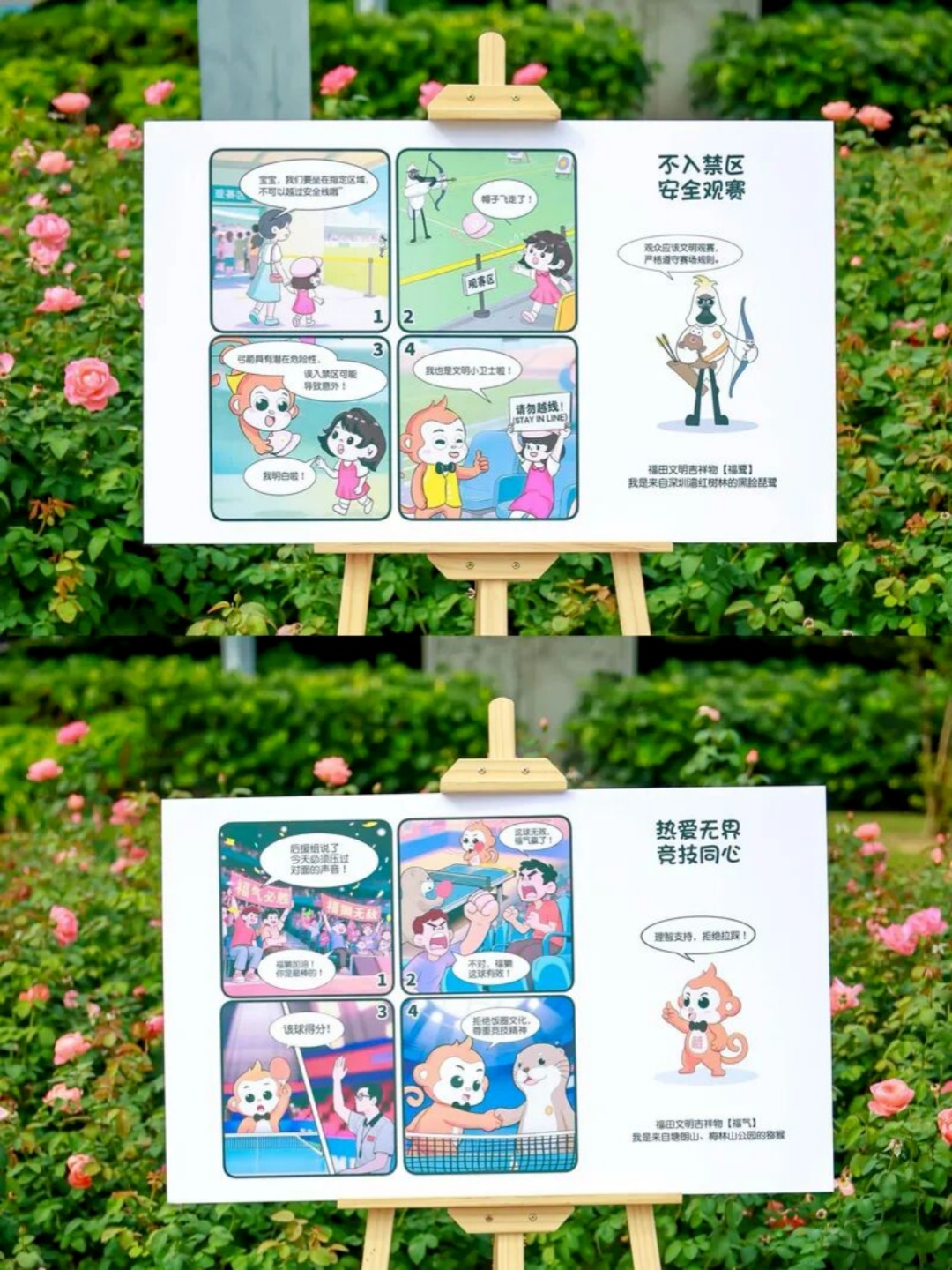 在发布环节,由深圳市文明办联合福田区文明办推出的“文明迎全运福气家族”系列主题海报在现场正式发布。海报以“福气家族”卡通形象为主体,融合全运元素,通过生动活泼的视觉语言,将“文明观赛”“礼貌待人”“环保参与”等理念具象化,引来市民纷纷拍照。