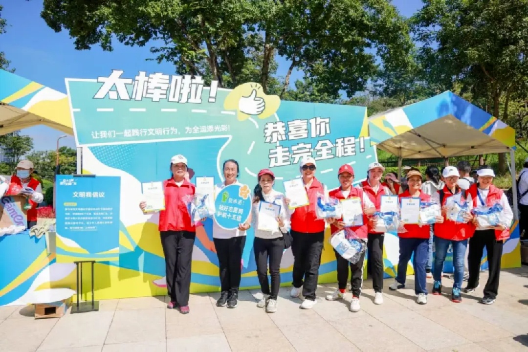 沿途,主办方设置了5个文明互动打卡点,让参与者在行走中体验、在互动中学习,最后集齐5枚“文明勋章”,还能兑换一份“全运心意”,让“行走”成为文明实践的生动课堂。